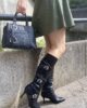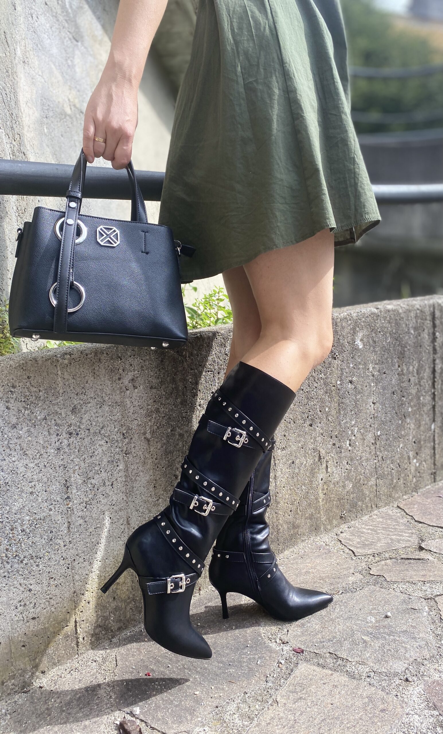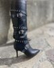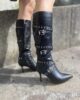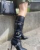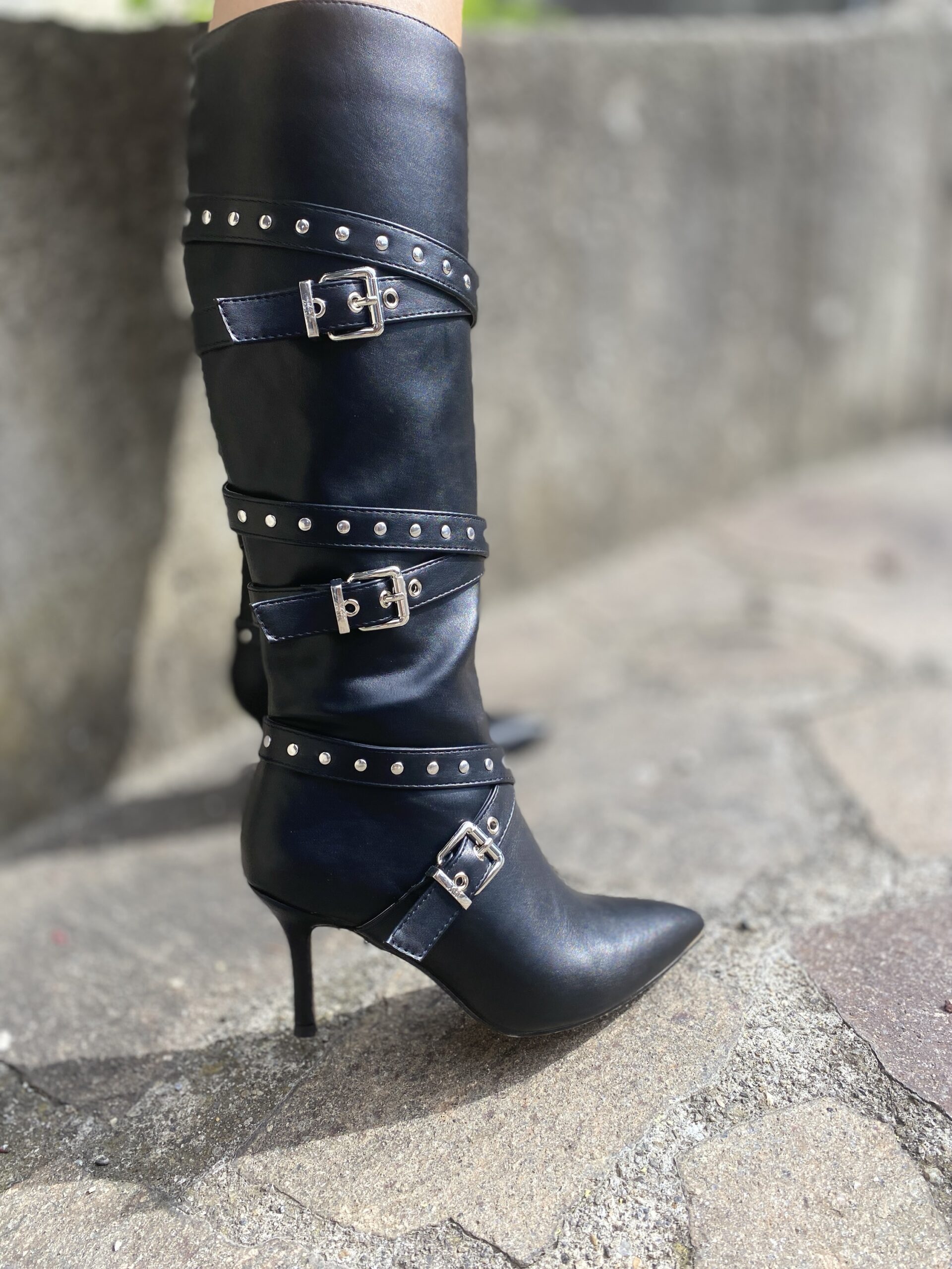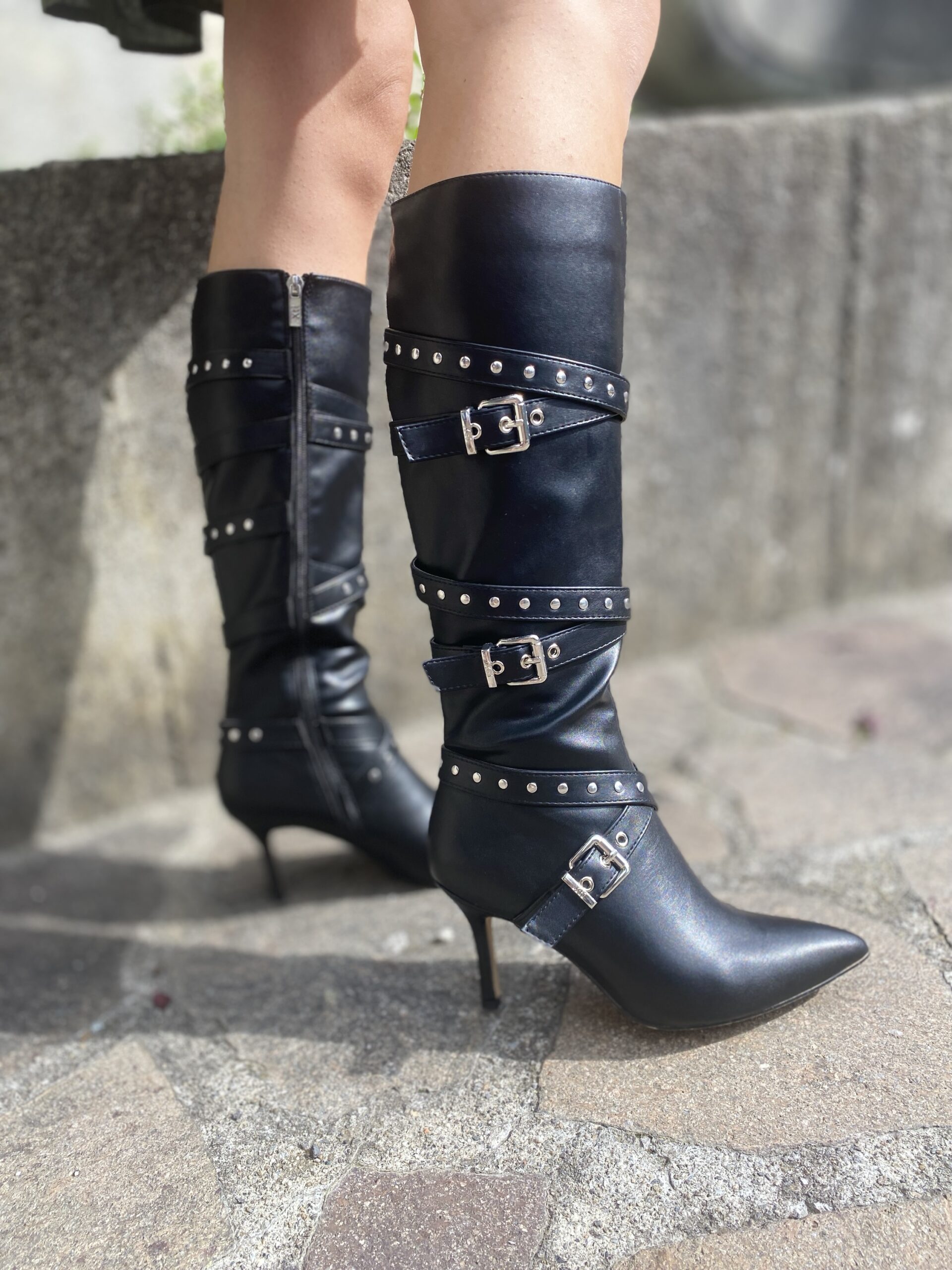 Stivale Vegano con gambale comodo cerniera laterale laccetti con borchie argento tacco 7 cm