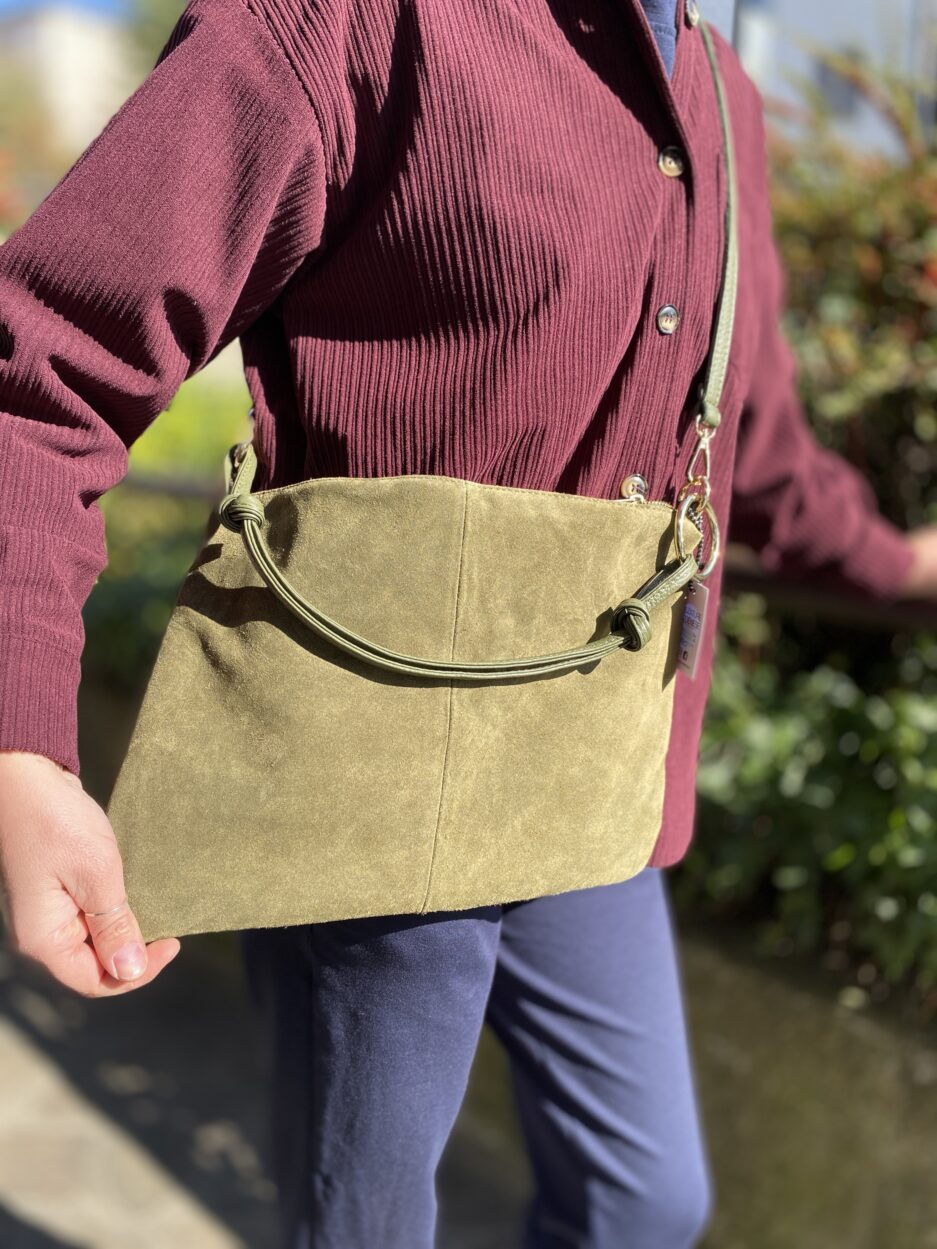 Borsa in pelle scamosciata rettangolare interno fodera e tasca