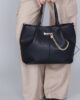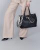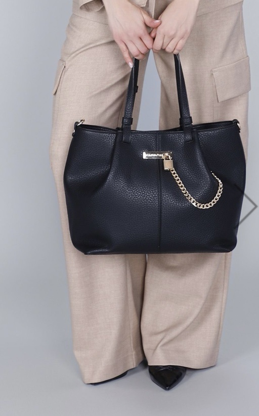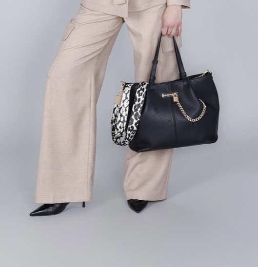 Shopping effetto pelle grana grossa con catena logo e lucchetto. tracolla a nastro animalier removibile per un look deciso e super femminile.