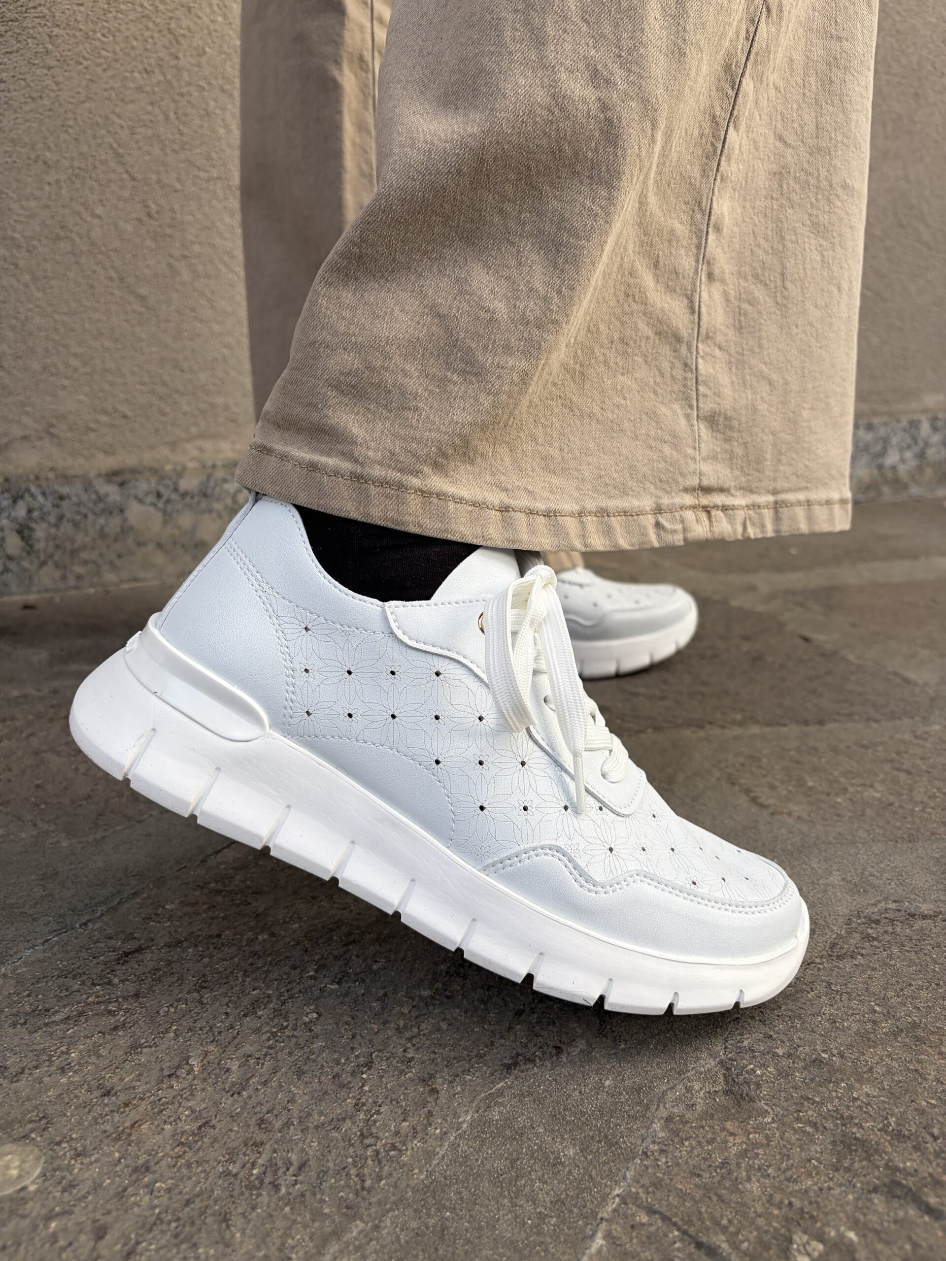 Sneakers bianca con tomaia morbidissima senza cuciture sottopiede estraibile in pelle