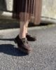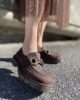 Mocassino marrone con fibbia oro tomaia effetto tweed sottopiede in pelle
