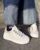 Sneaker con platform 5 cm stringhe bianche con accessorio effetto gioiello dettaglio tallone rosa