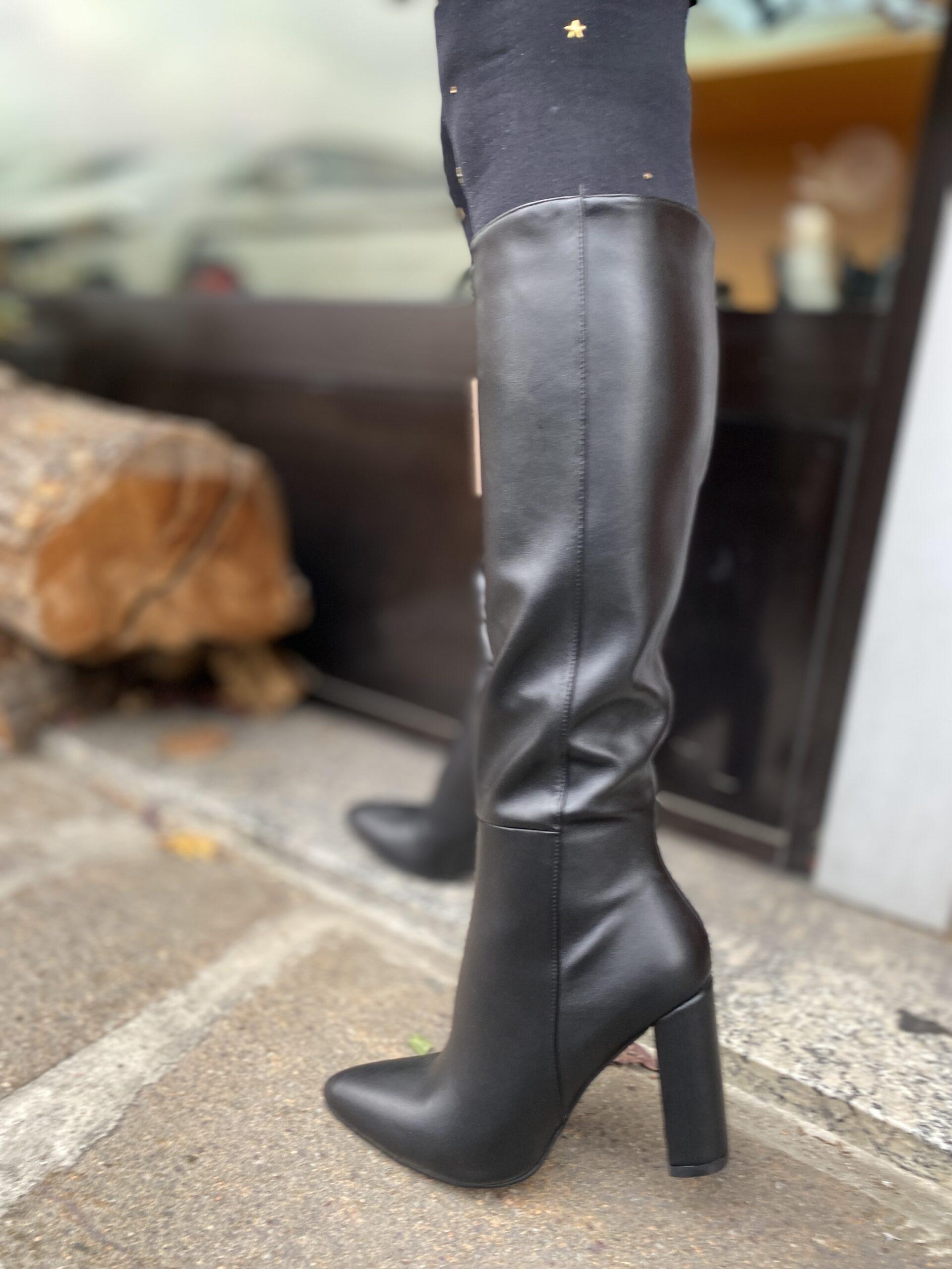 Stivale vegan tacco 9 cm gamba con cerniera e soffietto