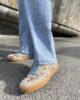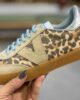 Sneaker fondo miele con profili in camoscio beige e tessuto animalier lacci azzurri
